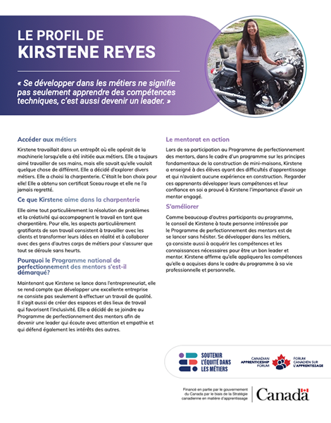 Profil d’un participant au programme national de développement des mentors de la CAF-FCA