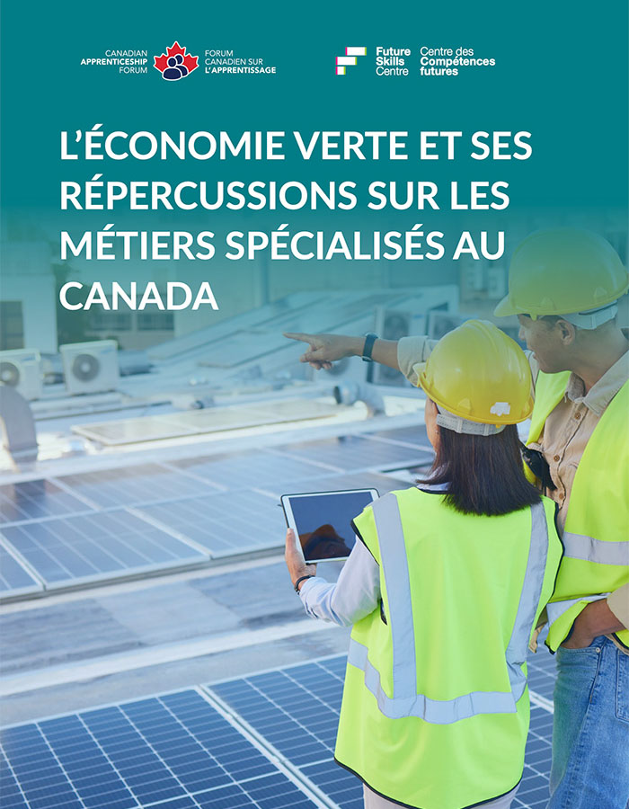 Ce rapport évalue la demande en formation dans les programmes d’apprentissage à mesure que l’économie progresse vers la décarbonation. Il examine également les principales professions vertes qui comptent sur des travailleurs de métier certifiés, mais qui n’ont pas de programmes d’apprentissage officiels. L’objectif de ce rapport est de mieux comprendre la dynamique de l’offre et de la demande dans les métiers spécialisés qui sont essentiels à l’économie verte, ainsi que d’évaluer si la main-d’œuvre du Canada est prête à soutenir un avenir sobre en carbone.